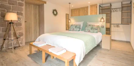 Les chambres ont été aménagées dans la partie ancienne de la bâtisse.