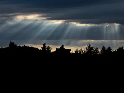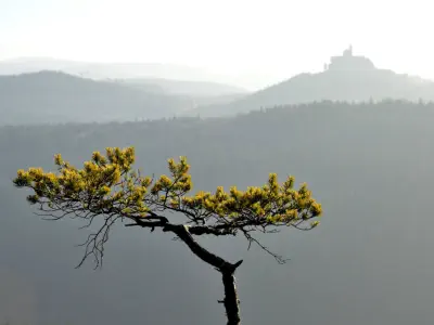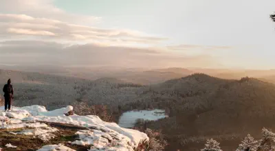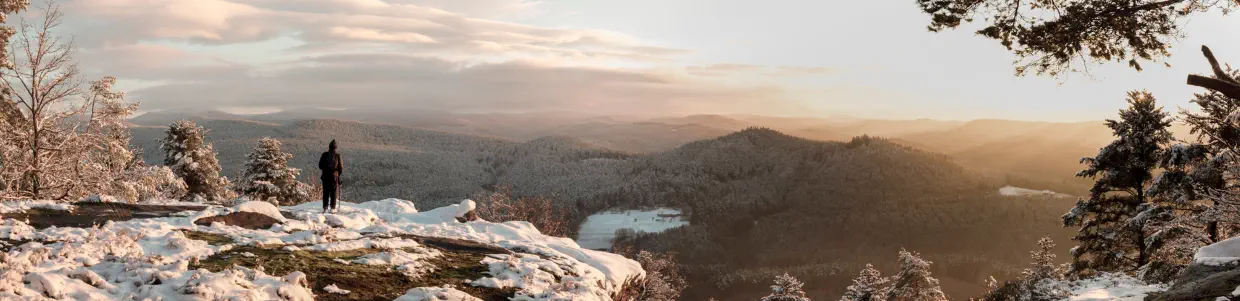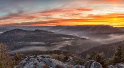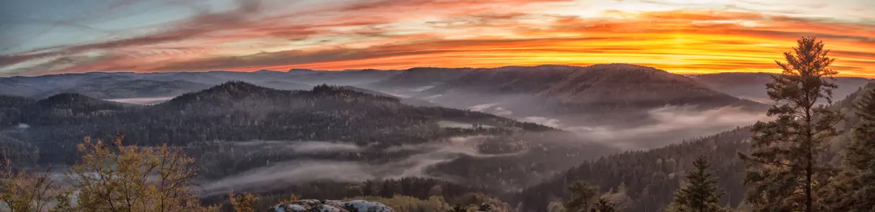 une vue panoramique sur les forêts des sommets Vosgiens et sur le plateau Lorrain.
