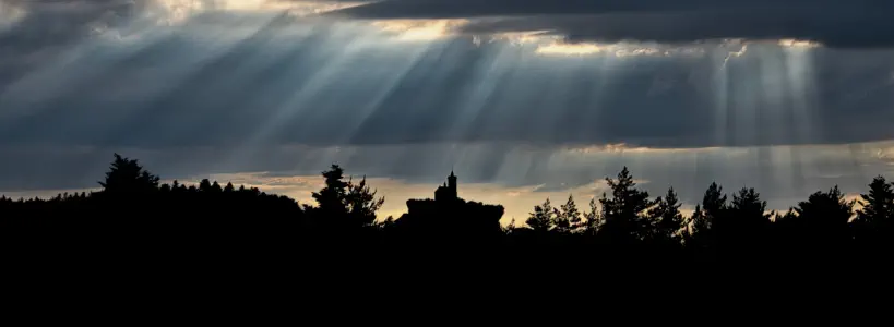 une vue panoramique sur les forêts des sommets Vosgiens et sur le plateau Lorrain.